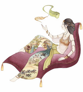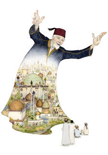 Two paintings I did for a magazine article about the tradition of storytelling and the stories of the "Arabian Nights".