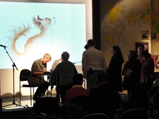 After a fantastic reading by Petra Oelker we signed till there were no more books and then talked about developing the ideas and doing the research for the paintings. Of course we also answered many interesting questions, my favorite being if the future books of Petra Oelker will also be illustrated. I say yes!