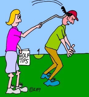 7. Great for retaining key swing thoughts in lessons. Just as you get to the top of your backswing, the top pops off and a pro in swimming togs leaps out and yells 'Keep that right knee flexed!"