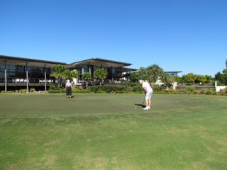 Pacific Harbour practice green and clubhouseBoy, did they get the name of this golf course wrong!