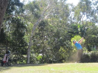 I managed par on the next couple of holes but then had trouble on 12, a par 5 of 422 metres with greenside bunkers. I was rapt to get out of the bunker with one shot (the face was about 15 ft high) but then I 3 putted.
