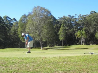 Tanawha Valley golf course (1122 metres, par 27) is the most picturesque course we've played since arriving on the Sunshine Coast. It's a 9-hole par 3 course with holes from 94 to 176 metres, so you can try out just about every club off the tee.