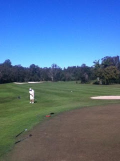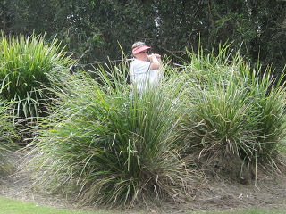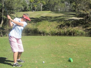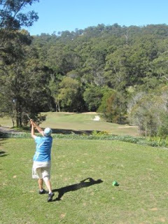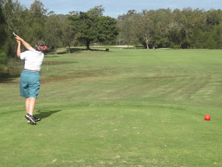 Gold Coast Country Club reminded me of a public course. It looked well used.A lot of the ‘well used’ look was probably due to the high rainfall over winter and the fact that they still let people use carts on a course that didn’t have complete cart paths. So the sides of some fairways had what looked like wombat wallows. Local rules included a club-length preferred lie through the greens, which I found I needed for bare lies rather than muddy patches.But over here a ‘wet’ course is different to New Zealand. At home you tend to get mud all over your shoes and trousers - we walked off today’s course with mudless shoes.Of course, the cart might have had something to do with that.Some of the bunkers were GUR. They were easy to pick out as they were the bunkers with ducks swimming in them.I thought the course was fine. It helped to hit the ball straight, which we both managed today. This was probably helped by hitting 30 or 40 balls at the practice range before we played. (70 balls for $10)The Gold Coast course measures 5526 metres so our fairway woods got more work than at Gainsborough Greens. It had some large greens but the undulations weren’t as severe as Gainsborough Greens so the putting was a little easier.