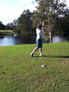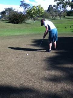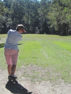 The pressure was obviously getting to Fiona (only 2 shots ahead now) as she blocked her drive into the gum trees. However, it only hit leaves and kept going, but it was still about 30 metres short.