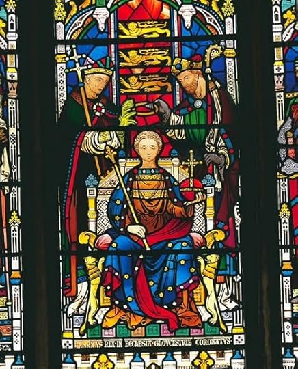 The first coronation of Henry III, from a windowat Gloucester CathedralIn 1220, when Henry was crowned for a second time, the ceremony, attended by notably more prelates and barons than on the first occasion, was described in much more detail. Records of that event have identified the crown used on that occasion as the Diadem of Edward the Confessor. That this was the same one as used by Edward himself and later William the Conqueror and his successors is quite probable. An inventory of the Crown jewels by a monk at Westminster in the mid-1400s makes further reference to ‘an excellent golden crown’, along with other items apparently used at Edward the Confessor’s coronation, including ‘a tunicle…golden comb and spoon’, and for his wife, Edith, a crown, two rods, an onyx stone chalice and a paten. The spoon, along with the golden ampulla first used at the coronation of Henry IV to pour holy oil over the king, are two of the few pieces from the set that have survived.
