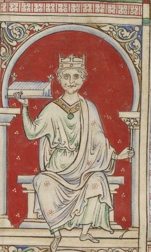 Flambard had been in Durham less than a year when William II died in 1100, most likely murdered, riding in the New Forest. After mourning the king at Winchester, his well ran dry on the accession of Rufus’s younger brother, Henry I (pic below). Well aware of the bishop’s sinful reputation, the new king stripped Flambard of his offices of state and imprisoned him on charges of embezzlement.