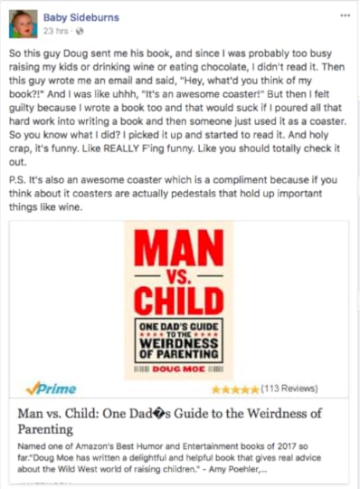 The hilarious Baby Sideburns blog put up a post about my book today. Pull quote: “…holy crap, it’s funny. Like REALLY F’ing funny. Like you should totally check it out.” And “It’s also an awesome coaster.” This is very true - it’s smooth cover is easy to wipe liquids from.