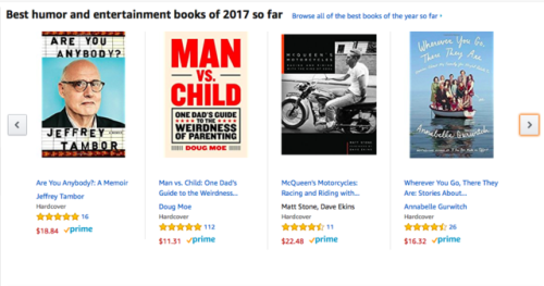 My book was chosen by Amazon as one of the “best humor and entertainment books of 2017 so far.” This is an INCREDIBLE honor. I’m on this list with: