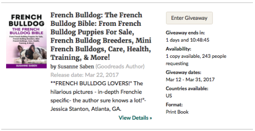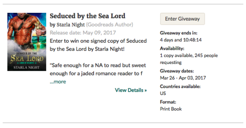 Right now, slightly more people (245) are interested in winning a copy of Seduced by the Sea Lord than winning my book Man Vs Child (244). Although I am still slightly more in demand than French Bulldog: The French Bulldog Bible. Caught between the Sea Lord and French Bulldogs: isn’t that an old song?