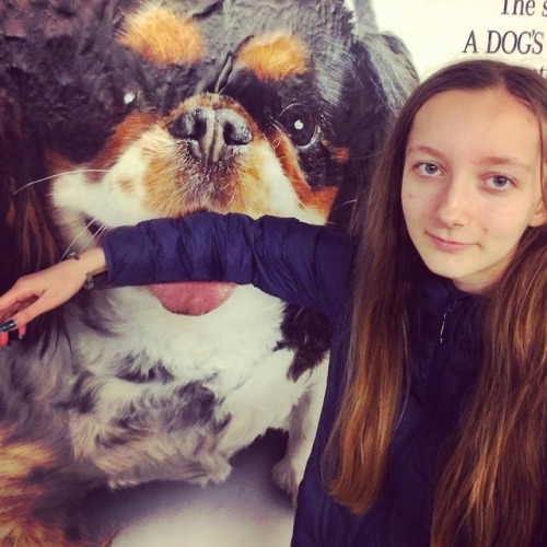 Daughter barely tolerating my insistence on hilarious picture of poster dog eating her arm. Refuses to “sell it”