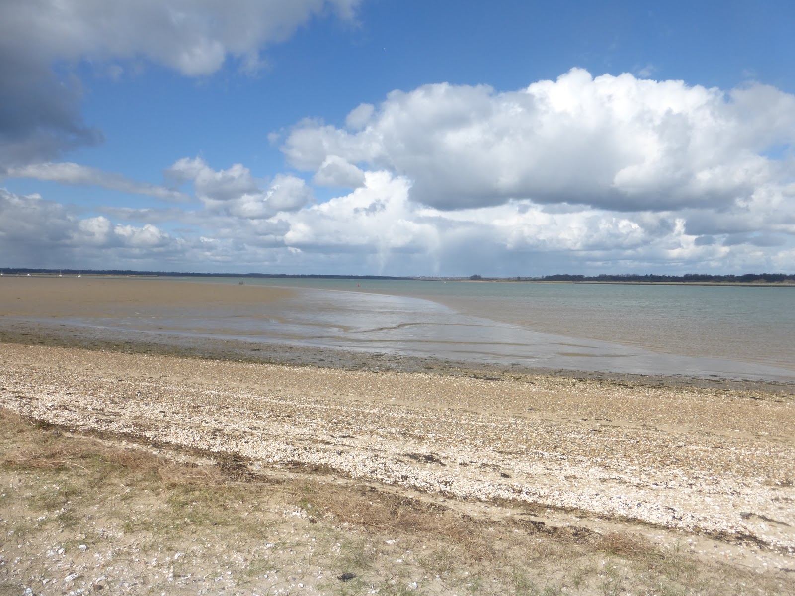 On the way back to Cheshire yesterday, I decided that, as the sun was shining (well, intermittently; there was also hail and torrential rain), I'd take a look at the island of Mersea. I've come across the place in the fiction of Margery Allingham and Andrew Garve (The File on Lester), and Seona told me it also features in a non-crime novel by Sabine Baring-Gould. As I am very keen on islands, I wanted to see what it was like in reality.