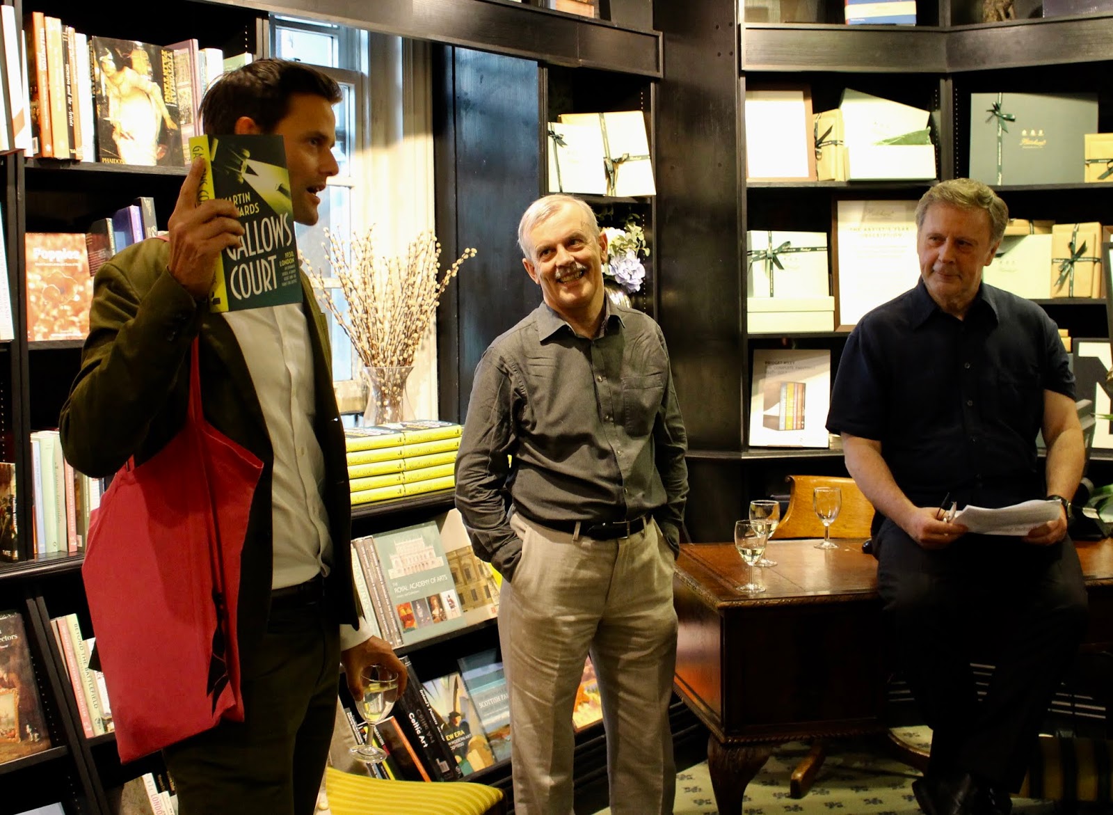 At this time of year, I like to indulge my nostalgic instincts by looking back on the events of the past twelve months and picking out special memories, before turning to the year to come. 2018 was no question, amazing, a year rich in terms of exciting experiences. So I'll group them under three broad headings, starting with publications. And there's no doubt about the stand-out moment for me - it was the publication in the UK of Gallows Court, by Head of Zeus, celebrated with a delightful launch event at historic Hatchard's in Piccadilly. Pictured above are Nic Cheetham of Zeus, Barry Forshaw, and Robert (Death in Paradise) Thorogood.