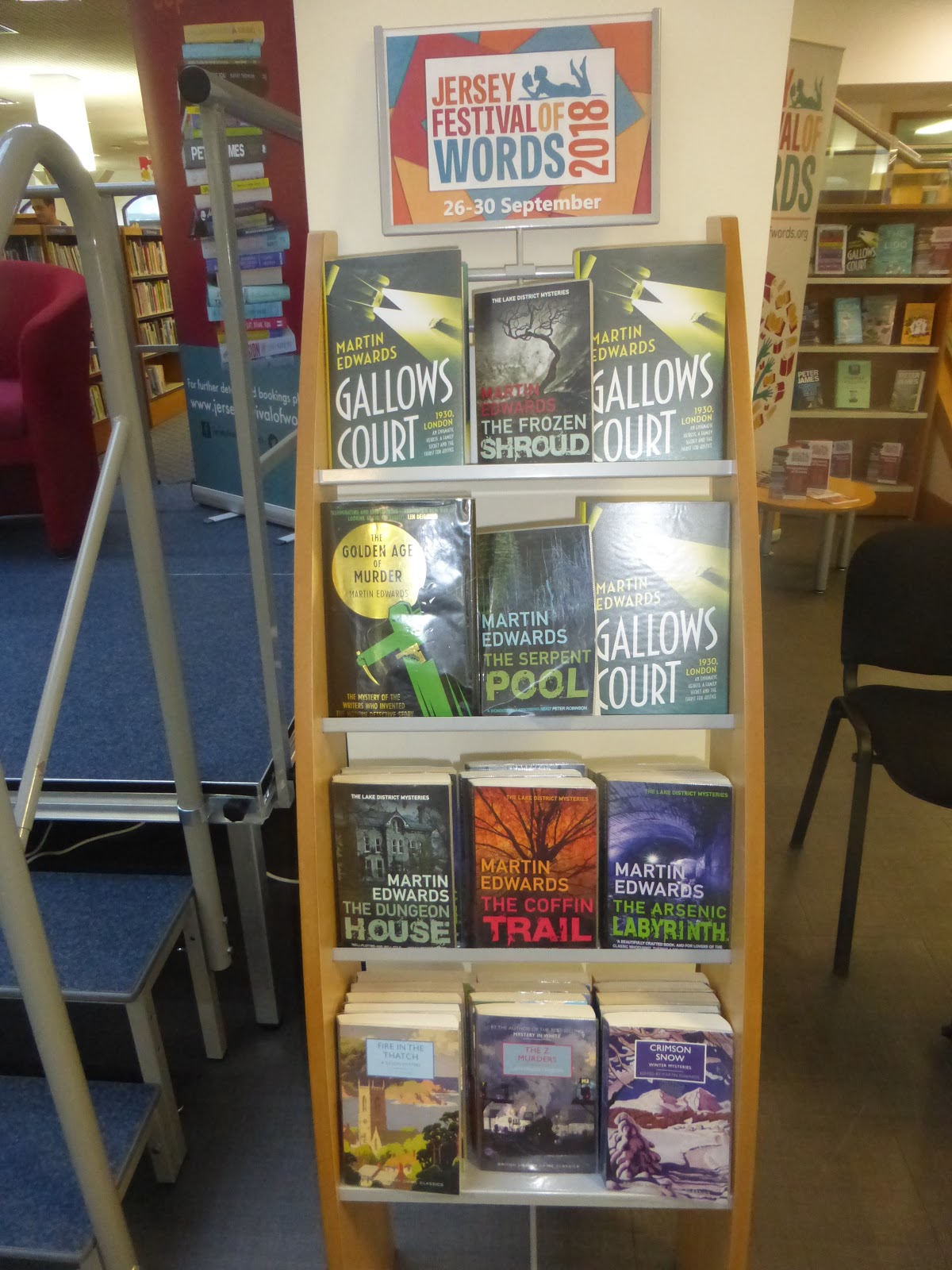 Libraries play a very important part in my life, and in my writing career. Close to home, it was a huge relief when Lymm Library was saved for the community, and I was also glad to collaborate with the Friends of Stockton Heath Library in the neighbouring village. In fact, I spent a lot of time in some terrific libraries during 2018. There were talks in libraries in Guernsey and (on two separate occasions) Jersey, as well as in places as diverse as Woking and Penketh, Frodsham and Knowsley, Birkenhead, and Sandiway. I loved my first visit to the Highgate LSI, with its unique atmosphere, while Bodies from the Library, at the British Library, was as good as ever; there, I gave a talk about Richard Hull, and was kindly invited to take part in a podcast by impossible crime experts Daniel Curtis and Jim Noy; they are members of a growing new, younger generation of Golden Age fans, and such enthusiasm for classic crime augurs well for the future.