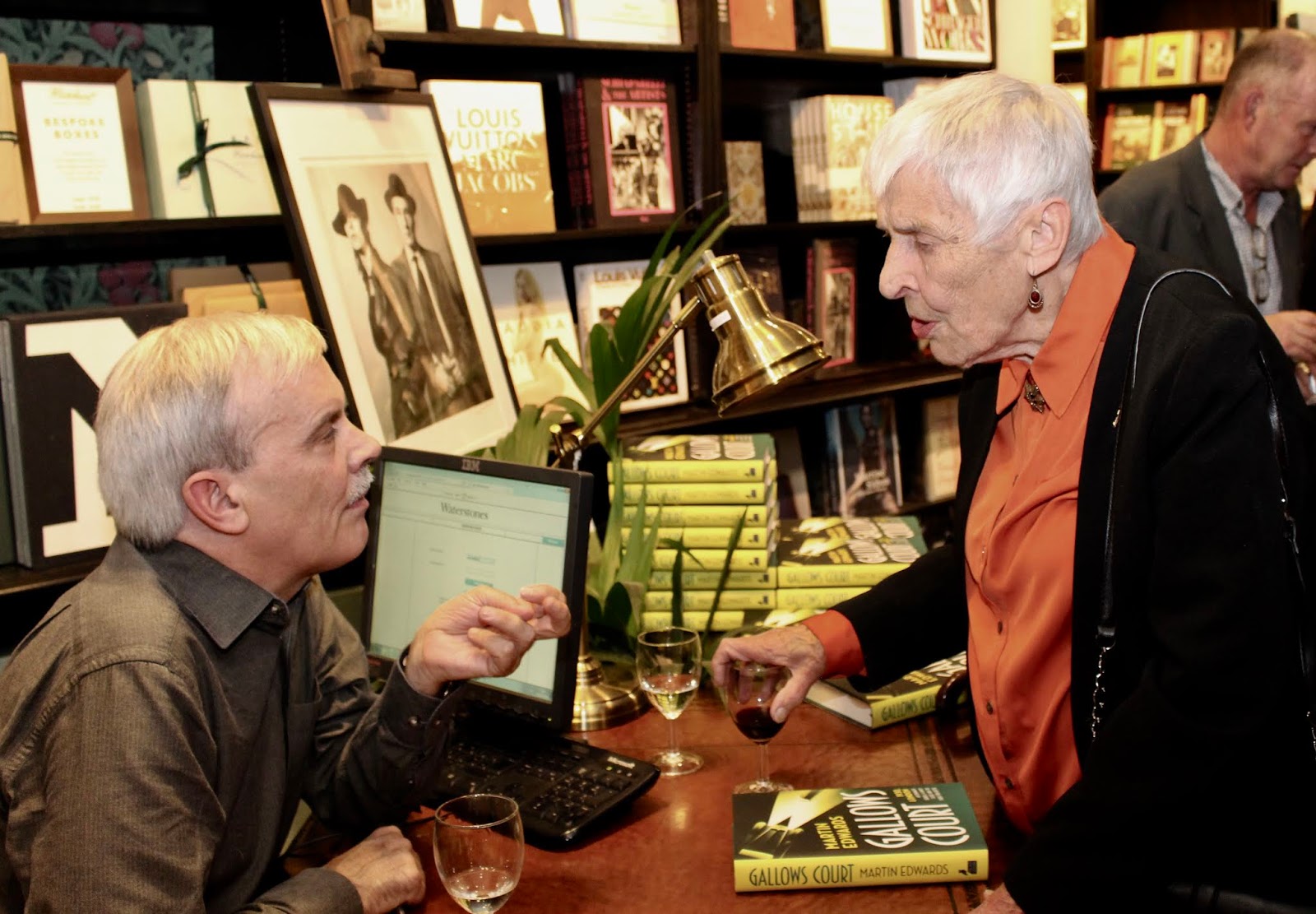 Among many others, I was delighted to see my former agent, Mandy Little, her successor James Wills, my editor at Harper Collins, David Brawn, and my former editor (from my days with Hodder) Kate Lyall Grant, along with fellow crime writer and music agent Paul Charles. I'd lunched with Paul and chatted to Kate a week earlier in Florida: small world, huh? Simon Brett, my predecessor as President of the Detection Club, came along, and so did Sheila Mitchell, widow of Simon's predecessor, Harry Keating, Bodies from the Library organisers, and the family of CWA founder Roy Vickers. It was good to see Gordon Griffin, a terrific actor who has recorded many of my audio books. There were also numerous CWA chums including Mike Stotter, Linda Stratmann, Ruth Dudley Edwards, Ali Karim, Ayo Onatade, and Chrissie Poulson, other fellow writers such as Robert Thorogood, the lovely guy who created and writes Death in Paradise, blogging friends like Moira Redmond, and Golden Age enthusiasts like Sven, Seona Ford from the Dorothy L. Sayers Society, and Geoff Bradley, editor of CADS.