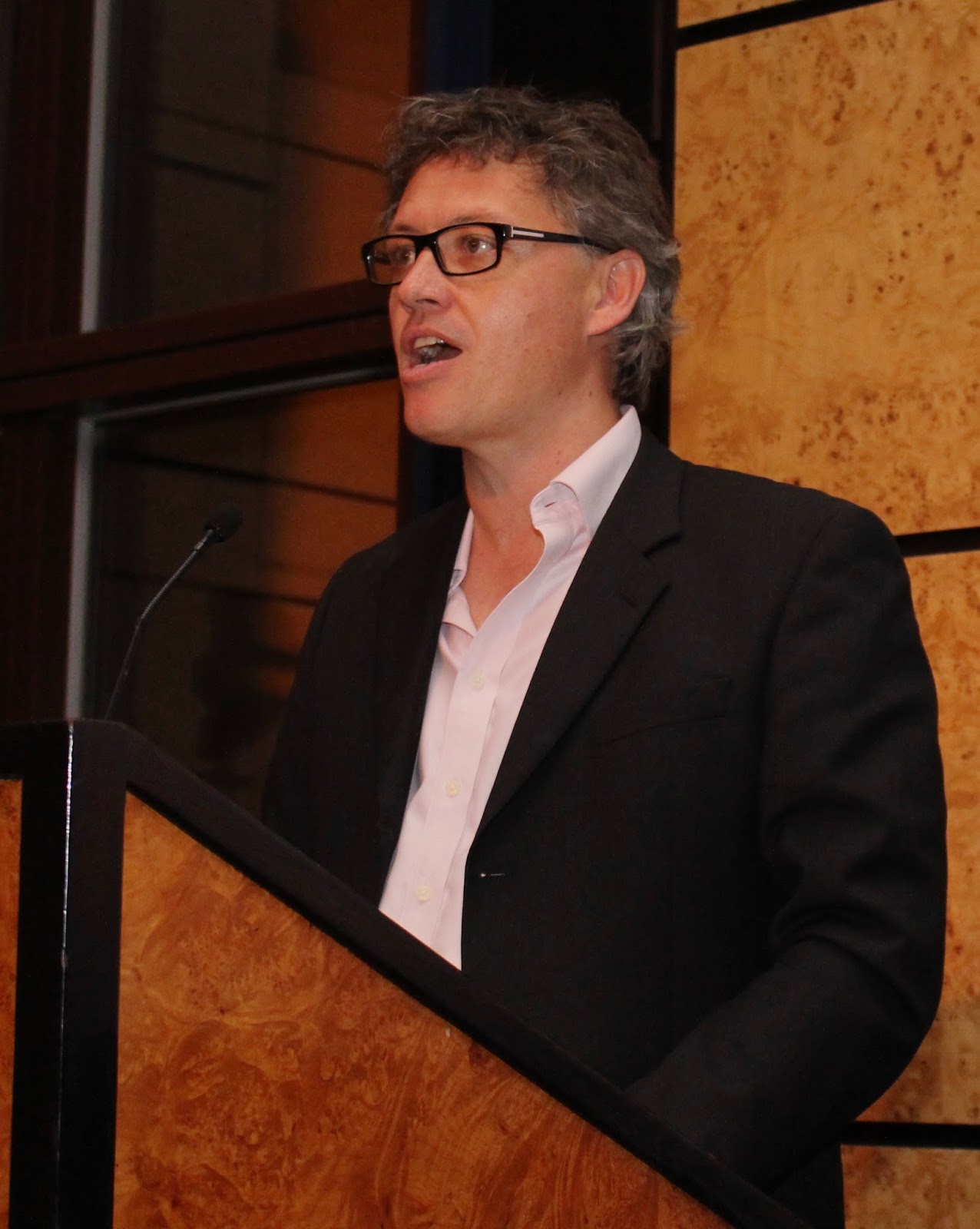Huge credit also goes to our Master of Ceremonies, the inimitable Barry Forshaw, whom I presented with a CWA Red Herring award. Barry, the consummate professional, made sure that the ceremony went with a swing. And our guest speaker was absolutely excellent. He was Robert Thorogood, creator and writer of Death in Paradise, who proved to be both witty and charming. We had a very enjoyable chat about Golden Age fiction, of which (as those who have watched the show can guess) he is a huge fan. Robert had a tough act to follow, because last year James Runcie was a splendid guest speaker, but we were lucky to have someone equally impressive this time around.