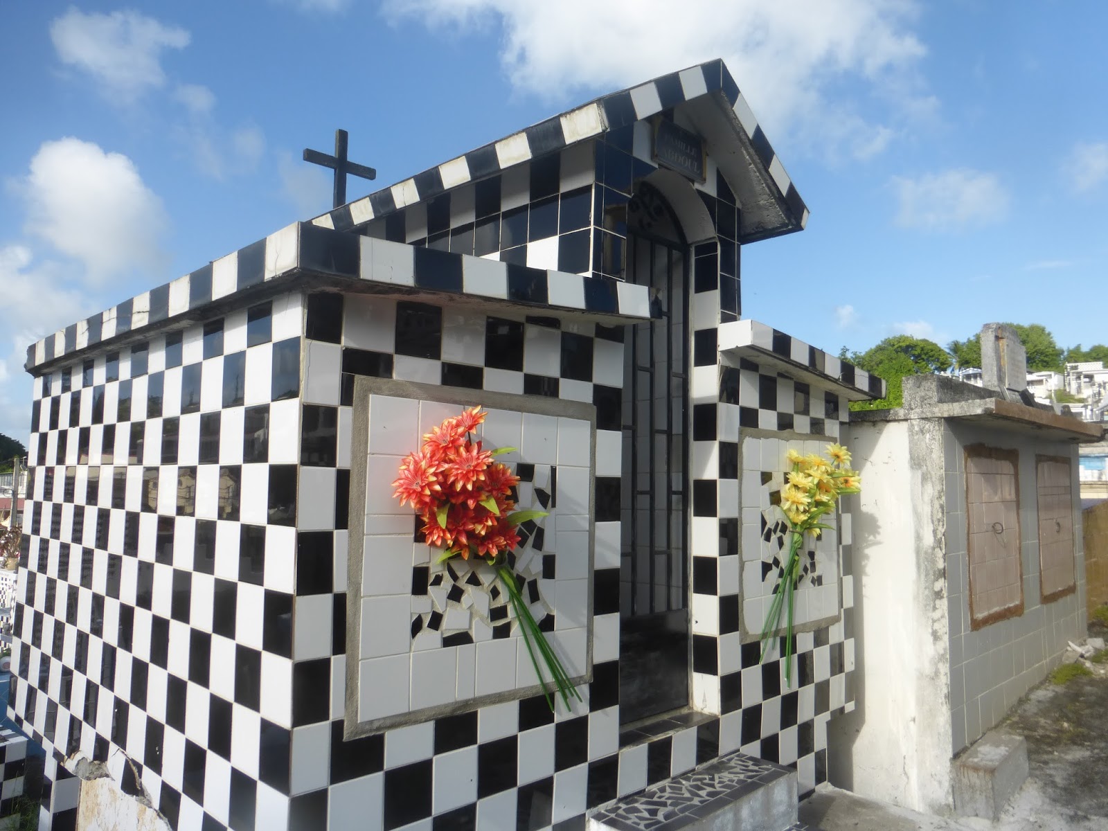 I didn't actually make it to the resort where the show is filmed, though one couple did make that specific pilgrimage, such is their love of the series. But Guadeloupe is full of interesting and often very beautiful places. And my interest in the macabre was piqued by the fascinating "checkerboard cemetery" to which we were taken. I've never seen anything quite like it.