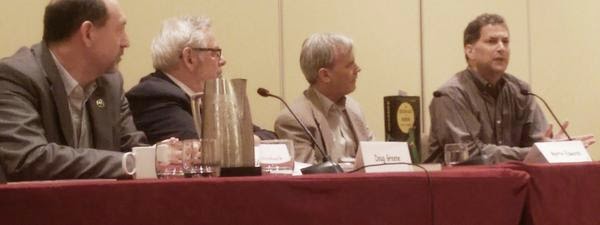 As for the events on the programme, Katherine and I talked on Saturday about Patricia Moyes' work, and some other aspects of post-Golden Age whodunit writing. Sunday was hectic. After that brunch, Doug moderated a Golden Age panel including Steve, Dan, and myself (photo courtesy of Gigi Pandian.) All I need say is that, as throughout the week-end, I felt quite humbled by the kind things said about The Golden Age of Murder. Finally, I interviewed the International Guest of Honour, Ann Cleeves, and the chance to pay a personal tribute to such an old friend was really the perfect way to round off the convention.