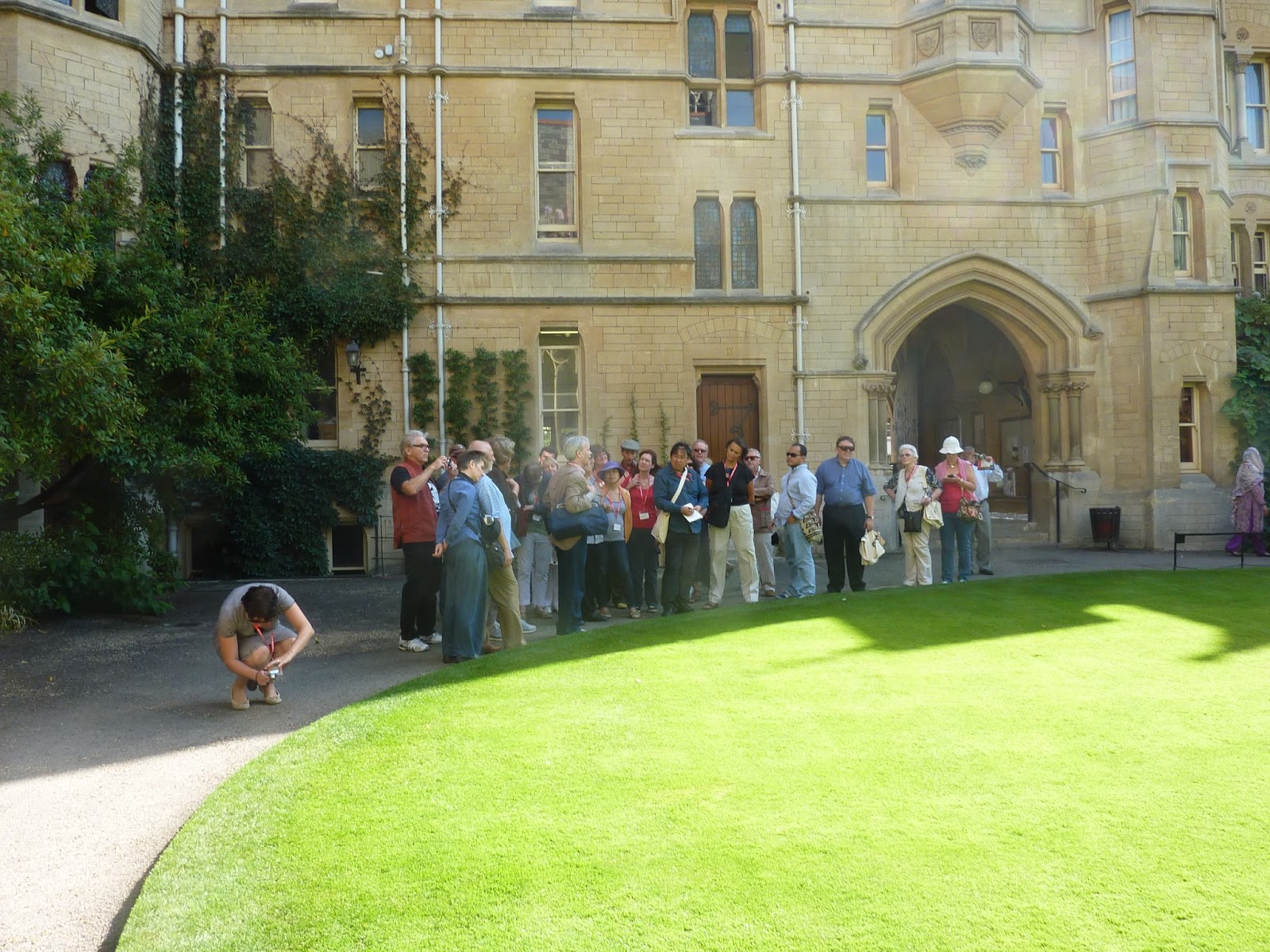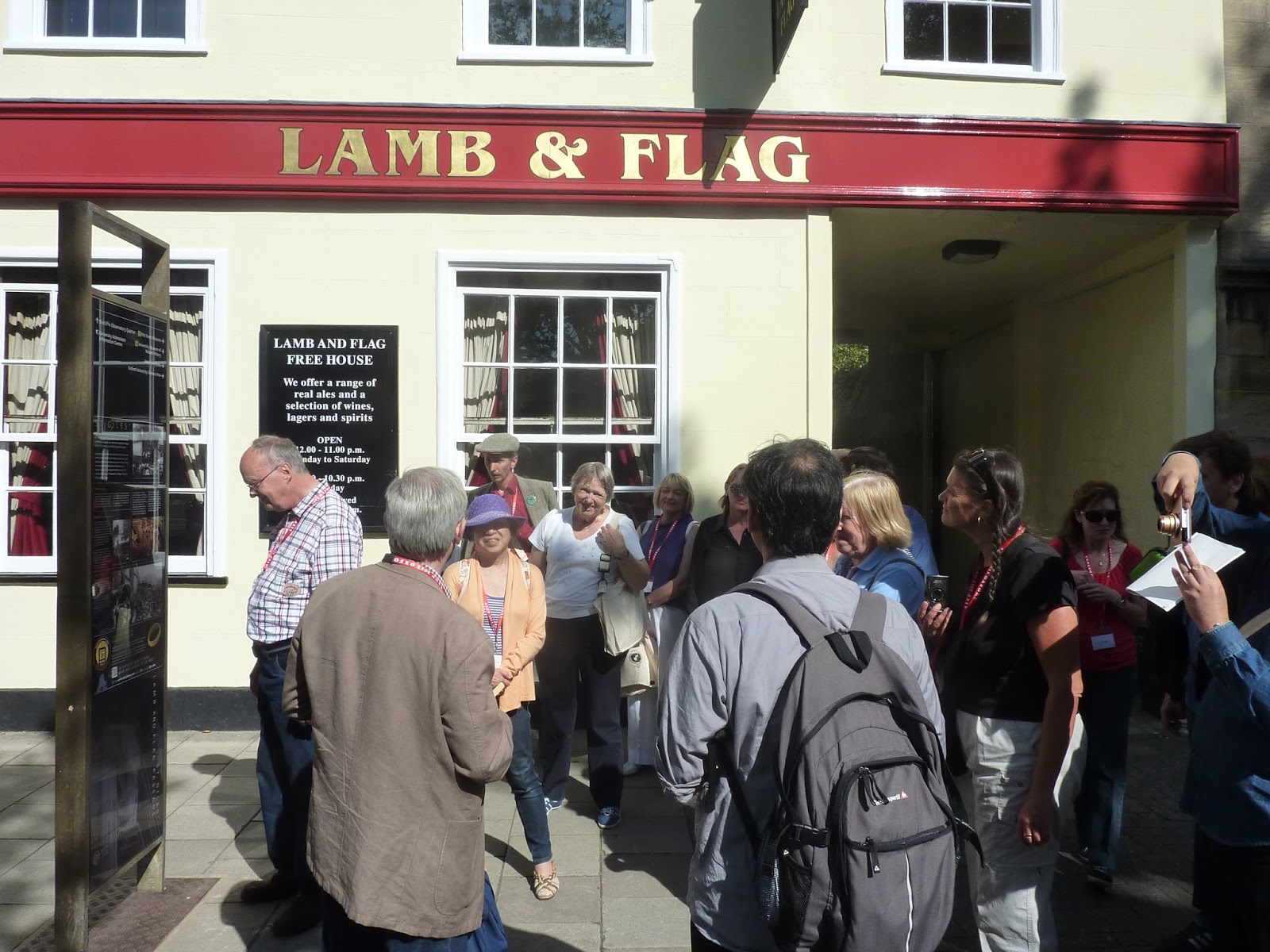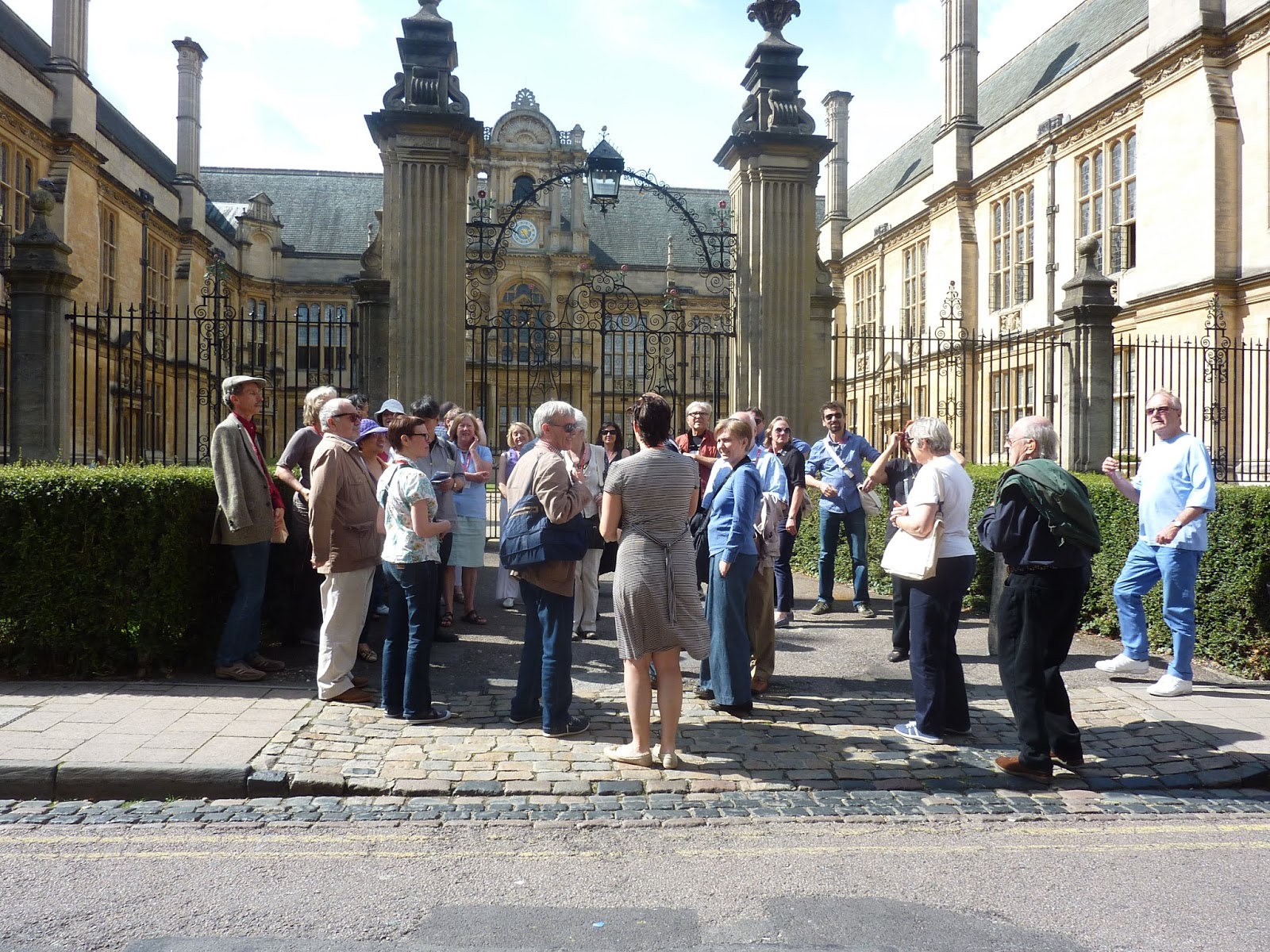 To my relief, the tour proved to be great fun. About 35 people came along, and I took them around the city, talking about some of the books set there as we went along. We toured the quadrangles of Balliol, and had a drink in the Eagle and Child, where once the Inklings met, drank and talked. Myfanwy Cook kindly acted as tour photographer!