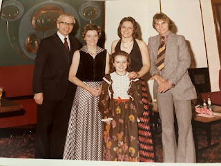 It was an extremely interesting project to undertake and one of the lasting pleasures I've had from it is that I got to know his widow, Myra, and their daughter Sue. Myra died some years ago, but Sue and I are still in regular touch. She has kindly shared a couple of photos from the family album. The above picture dates from her 21st birthday and shows Bill, Myra and the three children. The one below is from the Knoxes' wedding day.