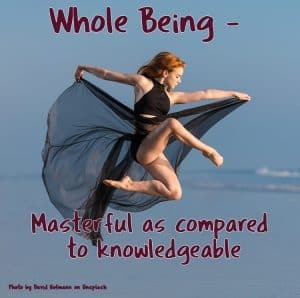 Whole Being — Masterful as compared to knowledgeable -knowing is seldom enough. Sometimes, it’s a hindrance. Mastery is moving past knowing to being.