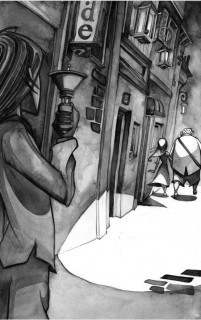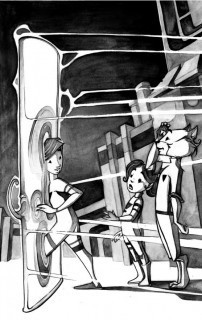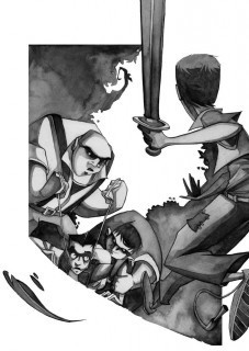 The illustrations: Nial O’Connor totally gets the energy of the story, capturing everything from the most kinetic action sequence to Ollie’s moments of mournful introspection. I’ve posted a couple below the cut. More of my favourites will be on my FaceBook page later today, once they upload. (I’ll update this page when that finally finishes.)