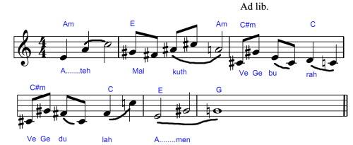 HOWEVER: the very fact that Mathers' system is completely unsophisticated compared to the Case/Bennett system is in fact its greatest advantage – because it allows Hebrew words to be chanted in simple melodies. This in turn makes it highly conducive to teaching a temple full of initiates whose musical talent may well range from hardened rock-musicians reared on Frank Zappa and Led Zeppelin to, well, drummers. By way of example, I shall now attempt to re-score the Lesser Banishing Ritual of the Pentagram according to the note-values suggested by Mathers.