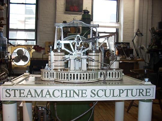 One of the most impressive displays was the Steamachine Sculpture of Todd Douglas Cahill. Each is a functional work of art. Besides the wonderful steam machines, his workshop was filled with lathes and presses.