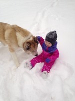 Sometimes standoffish. Often hand to control. Always willing to go for a walk/hike/ski/bike-jor.