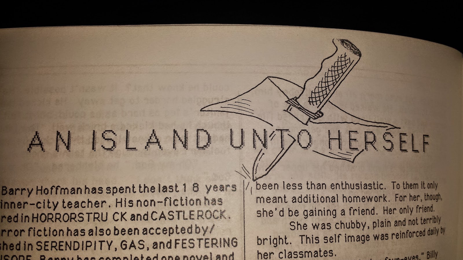Two things come to mind on this one. First, Barry Hoffman did make a few mistakes, but where it truly mattered everything clicked. Without reading his other works (both pre- and post- "Island Unto"), it would be unfair of me to say he was probably a younger author with true talent who was still learning the ropes. It's entirely possible he'd been writing for twenty years at that point and this was the highlight of his career. Equally possible: he had spent the better part of his 8 years as a teacher actually doing his day job & had only recently picked up paper and pen. I would believe either one. But what I can take away from this juxtaposition of talent & ignorance is that tried & true statement describing the employees of all professions: everybody has their own skills and their own weaknesses. Hoffman's skills easily surpassed his faults in this one, and I was happy the Cemetery Dance crew (oh wait... there was no crew back in '88... just Richard Chizmar all by himself) found & published this one.