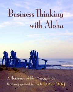 The 9 Key Concepts are the subject of my second book, Business Thinking with Aloha, a book which also differs in intended audience: I wrote it with my two children in mind, both then in college, and ready to enter the working world as young adults with career choices quite different from my own.
