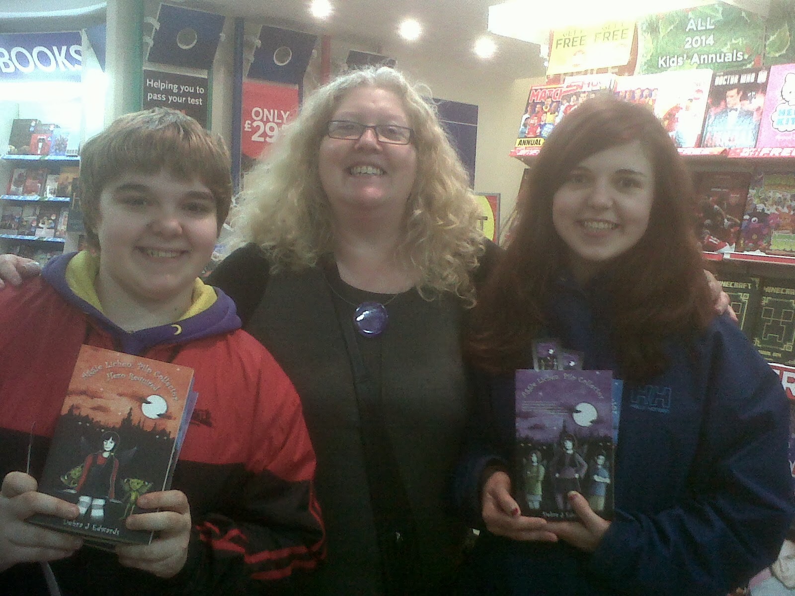 As always, I have met some fabulous people, in W H Smith's, Croydon for example. Some just very excited like Lauren and Claire, who were really pleased to meet an author and bought a set of the books EACH! Emily, Ashley and Sharmina were out shopping and we got talking about the books. Emily was persuaded to by a book, not by me, but by her friends. I hope she hasn't regretted it! Other people wanted to talk about writing as they had the creative urge too. All in all, it's been a crazy week with more to come. Thanks to everyone who bought or helped in the success.