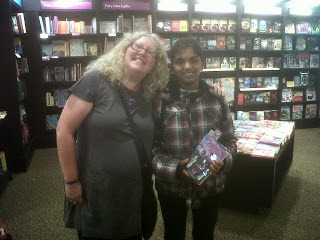 A special hello to Swaraa who also bought books. Her family seemed really happy to have met an author and have signed copies so they took photos of us together.