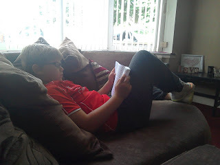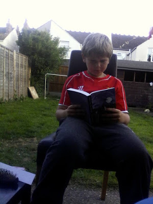 As a writer you always hope that your reader likes the book you've written. The problem is that you don't always get to hear about it if they do let alone see it. What a fabulous surprise to see these lovely photos of Callum Whyman reading the book his mum bought for him today at the school fair. It's the first of my trilogy, Aggie Lichen; Pilp Collector. He's already asking for book two and three! Fingers crossed he's just as interested halfway through. :)