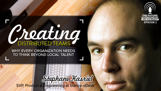 Today, more companies are employing the concept of distributed teams. A distributed team is a group of individuals who work beyond the restriction of a traditional office environment by using various technologies at their disposal for communication and collaboration. It doesn’t mean that these employees never see each other it just means that their “home-base” isn’t a central office or location. Organizations that can create distributed teams are able to see an increase in productivity, more employee engagement, and reduced costs on things such as real estate. Employees also appreciate the extra flexibility that they are offered. Going forward, employees no longer to work in an office to get things done, they simply need to “connect to work.” To learn more about distributed teams, why they are important, and how to create them I talked to Stephane Kasriel who is the SVP of Product and Engineering at Elance-Odesk; one of the world’s largest marketplaces for freelance employees. Stephane and I co-wrote an ebook together for Elance-Odesk called “Hire Fast & Build Things: How to recruit and manage a top-notch team of distributed engineers.” The concepts from that book are applicable to a variety of industries beyond just engineers. Stephane has actually done an amazing job of creating a good size distributed team at Elance-Odesk and in episode 2 of The Future of Work Podcast he shares how he did it and how others can do so as well.