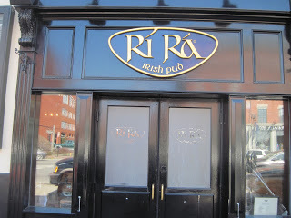 So yesterday was St Patrick's Day: looked like it was a wild night in the Old Port. As we walked, I noted the detritus of the bacchanalia: broken green beads, deflated blobs of green balloons, a man's yellow tie, a server's black apron, broken glass, and suffering partiers who stumbled slowly in and out of breakfast cafes or simply sat beside the harbor: head in hands. [image error]