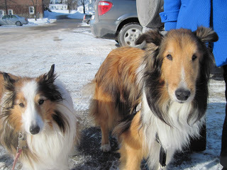 Fluff and I went for a walk around the pond on campus. I don't know what the kids did last night, but they did something. It was cold last night, below zero, and we have a fresh half foot of powdery snow. But warm 20F and sunny for our walk.