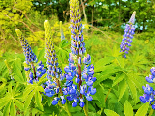 This week a friend who is moving gave me her mountain bike. What a nice ride. It's smooth and powerful. It's lighter than the bike I have, so easier to lift onto the car's bike rack. I rode a couple of miles along the river this morning. Lupines are blooming.