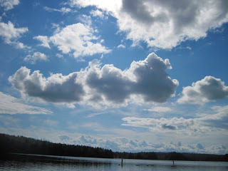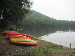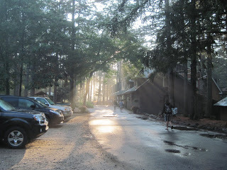 Right now I'm sitting in outside with coffee, watching chipmunks chase each other up a pine tree. I can see the pond. It's late wake-up this morning, so most people are still asleep. Not the music staff, they're practicing, so I'm treated to the sounds of multicultural rock and laughter.