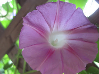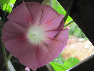 The sunflowers shout hello to the neighbors. The morning glories climb up the summerhouse, twine around the cedar trees, and fling themselves over the back fence.
