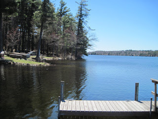 The leaves aren't out yet, so the trees still look dead. There was one duck on the pond. The huge mounds of snow are melting, black on the edges and puddly bottoms.