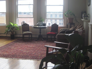 Found a parking spot, lugged my handouts and books up the stairs, I like to run up stairs- great aerobic exercise, and landed there. High ceilings and windows, wood floors, and antique furniture. Lovely.