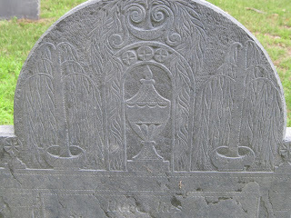 It was an hour over. Three there. An hour back, well two. We stopped to eat and to look at an old graveyard. Stones from 1786. I had a lobster roll, she had a vegie panini. I drank lukewarm decaf. It was 3:30; long since our broccoli breakfast quiche. The cemetery had slate and marble stones; Longfellows and who all. Engraved with urns and weeping willows. Mostly early 1800s. Peaceful and shady spot.