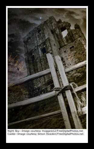 For those of you who don't know or are uncertain, Carrun Corgar is the ruins of a tower mentioned in Moonblood, apparently a former stronghold of goblin King Vahe's . . . and a place of certain significance to Sir Oeric, one of our fine knights.