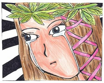 Where once had been a small pond surrounded by birches was now a laughing water fall; but as she looked more closely she saw it turn into a nymph, it's eyes sparkling with amusement. Above it was an entire village of cat people; amber cats, beige cats, chestnut cats, all kind of browns cats in colourful garments. The sight of a nymph was weird enough but a village of cats quite took her by surprise. Still hand in hand with her husband they slowly climbed out of the river.