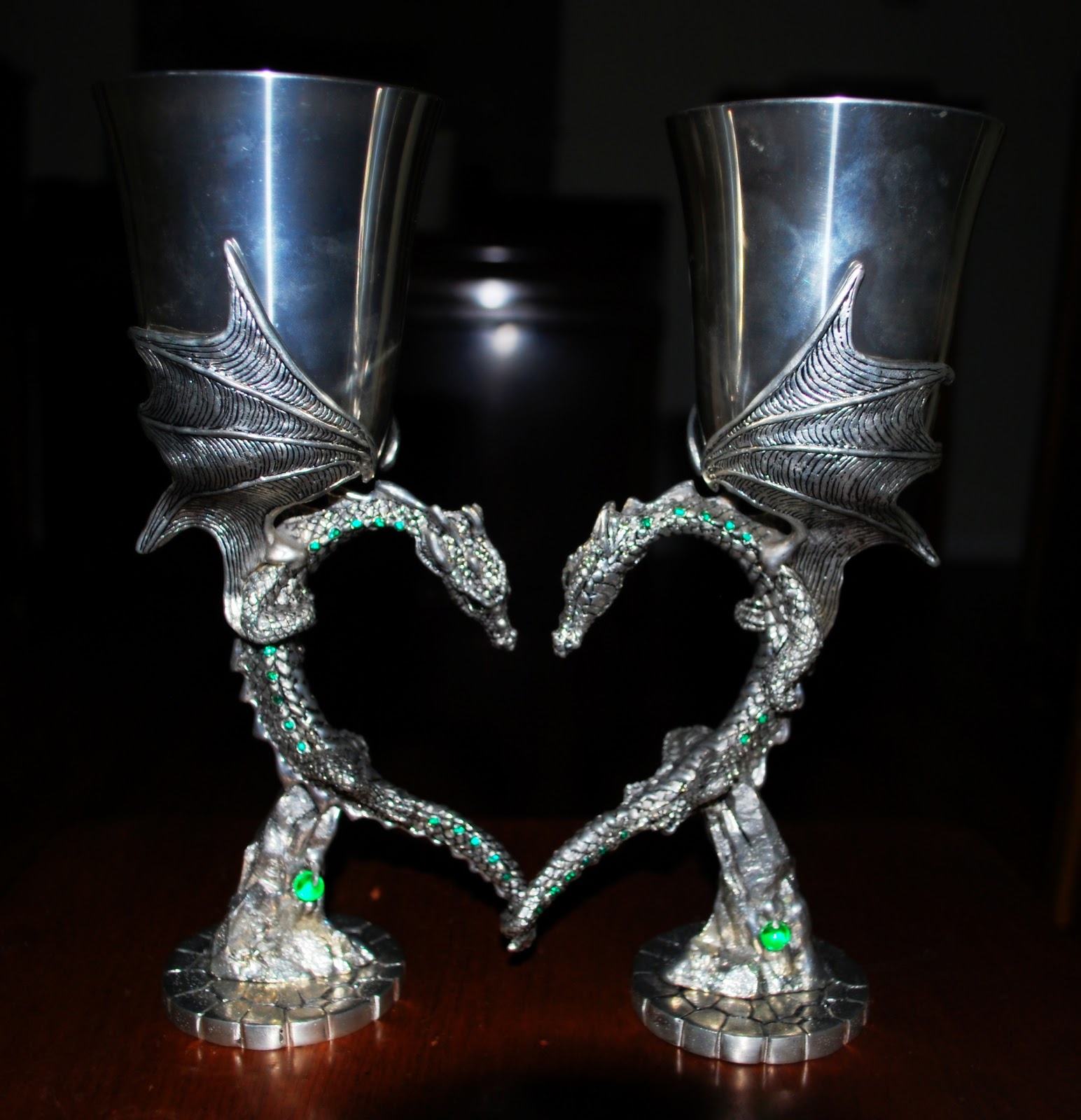 Dragon Goblets!!! One for me, one for Rohan . . . with tails that form a heart, because it's more romantic that way! Aren't these absolutely stunning? Look at the detail!