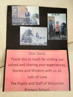 I had another special delivery on Friday too... an envelope arrived with a lovely handmade thank you card inside. Here's a picture of the card, which was sent by the teaching staff and children from Wilcombe school in Tiverton following my recent visit;