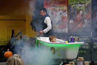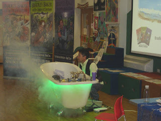 Pic 4. Jasper (aka Bradley Baker) getting ready to journey down the plughole during the first showcase... flashing green lights and smoke filled the stage!
