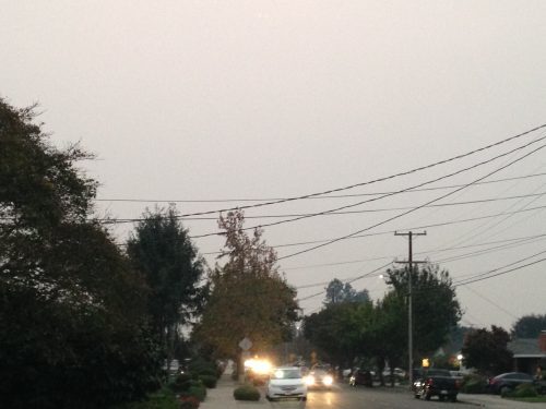 (This was sunset in my neighborhood two nights ago. Particle count was 187 per AirNow.)