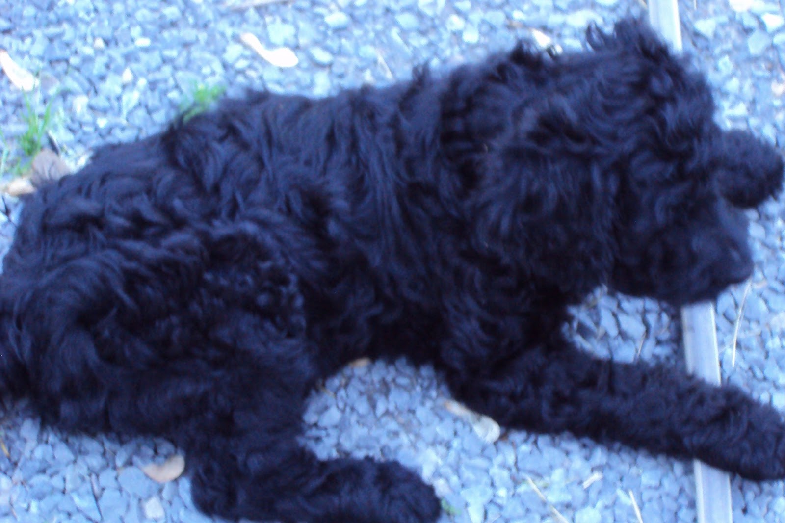 Meet "Jeter" our 9 week old GoldenDoodle puppy!So far all shoes are reported safe but one Wave Petunia met its end.... Naughty puppy! Stay out of the flowers!!! :)
