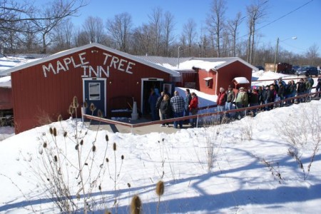 Look at the line!!! This is a yearly tradition of buckwheat pancakes and real Western New York maple syrup...